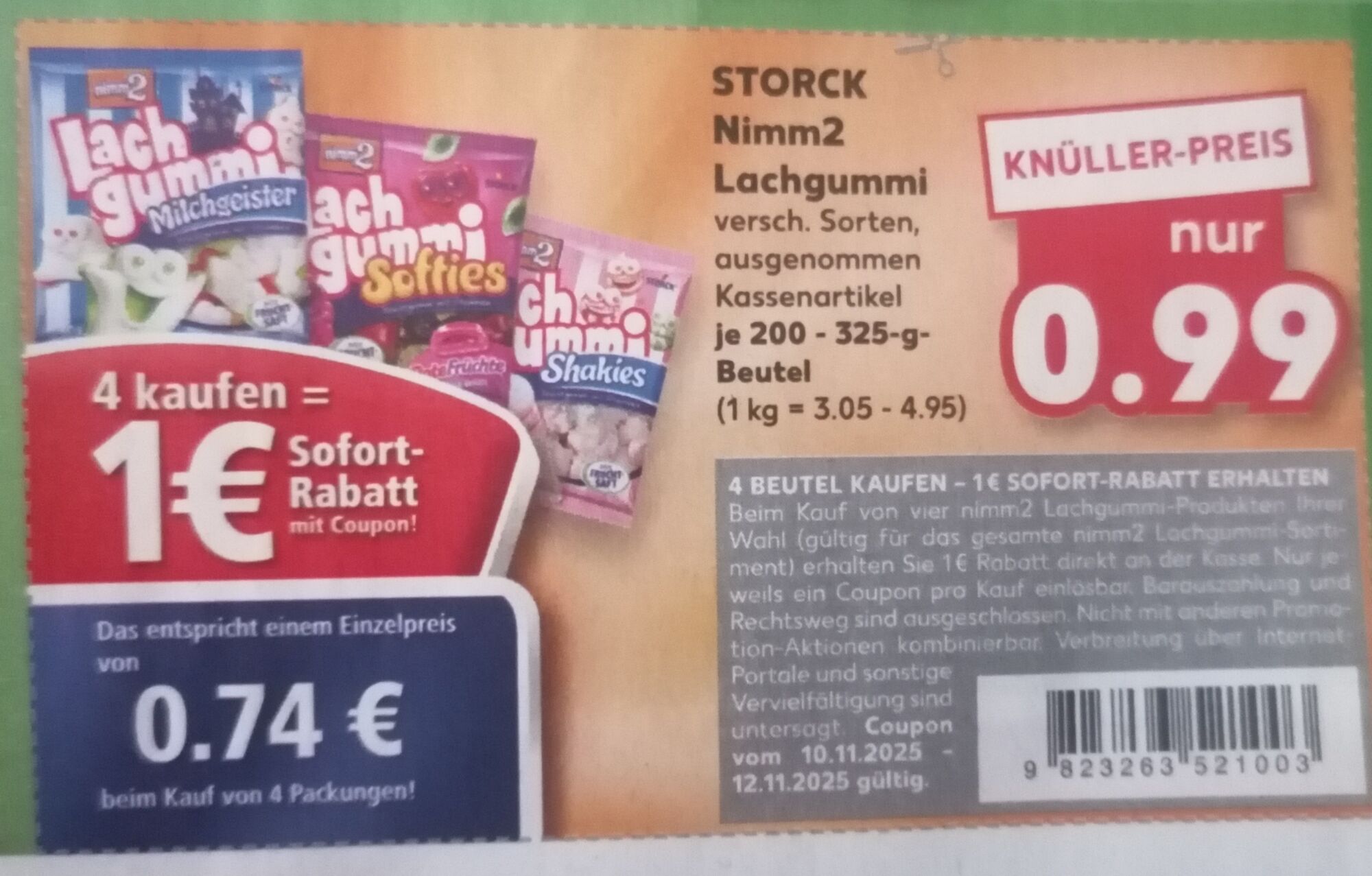 Bei Kaufland nur 3 Tage: Lachgummi 4 P. à 0,74 € bei Kauf von 4 Packungen mit Coupon