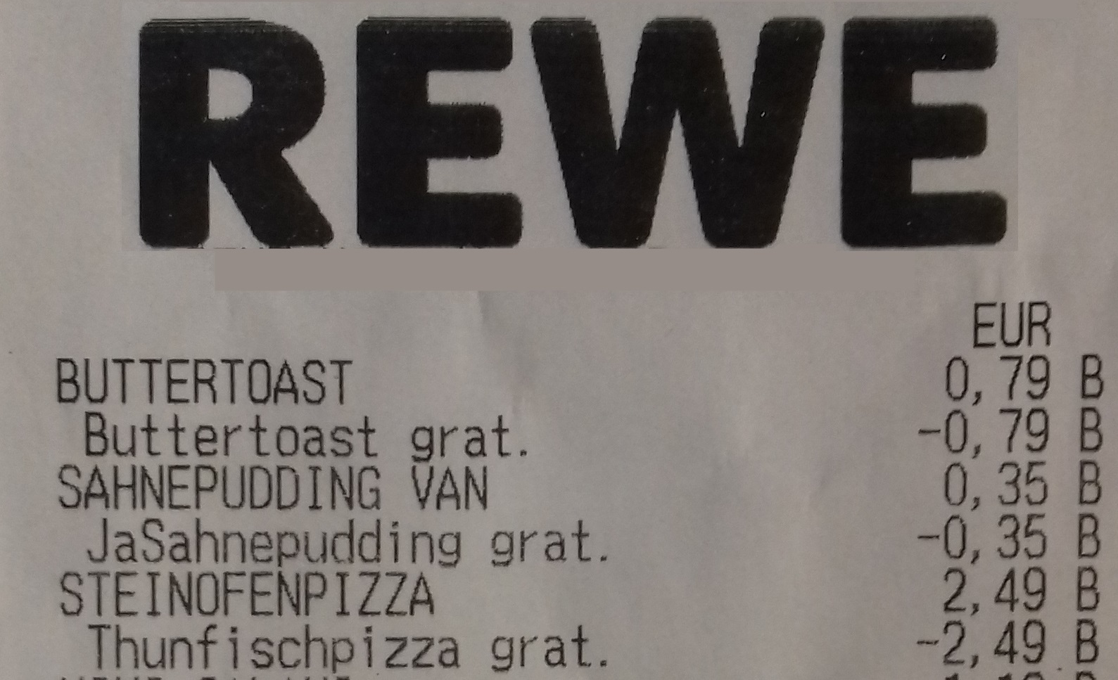 Alle 3 Dinge im Rewe erfolgreich eingelöst.