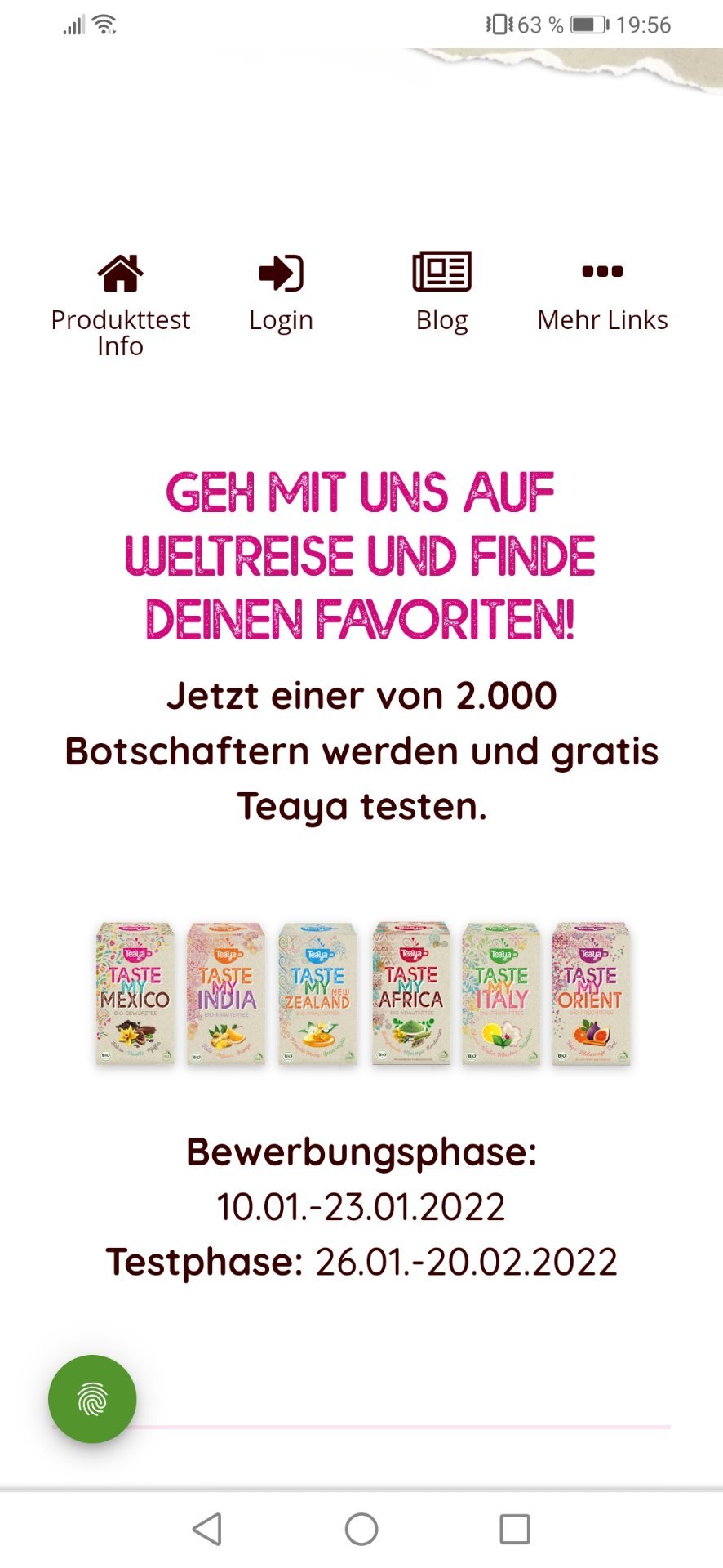 Ich darf mir auch den Tee kostenlos holen. Bei 5 von 7 Tests darf ich mitmachen.