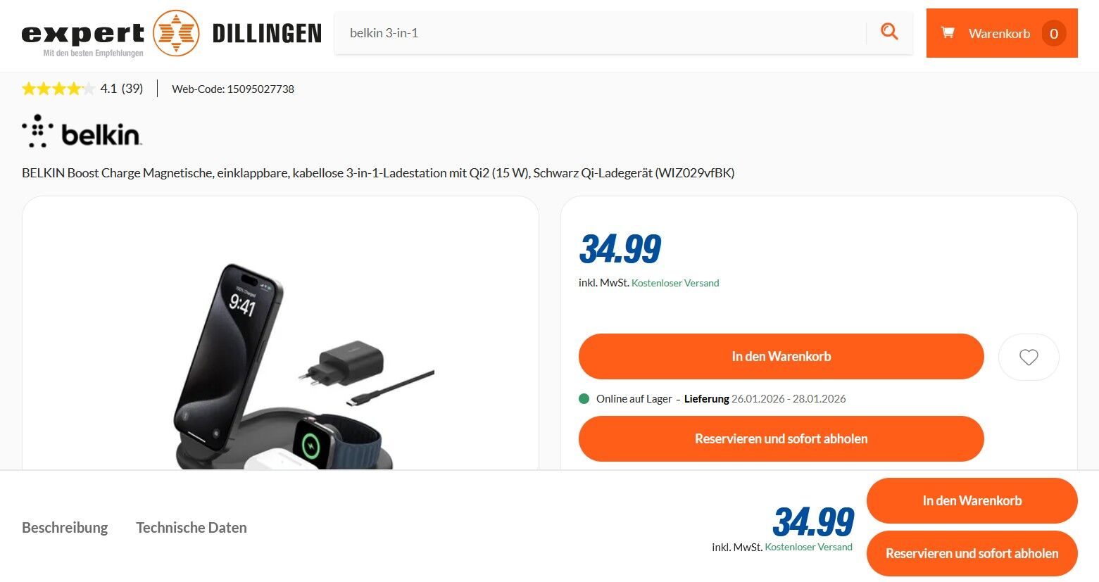 Die Belkin 3-in-1-Ladestation bekommt man bei expert Dillingen aktuell für 34,99€ inkl. Versand. Deal ist bereits angepasst 😉