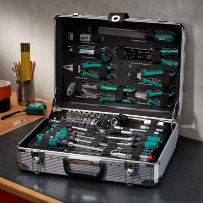 Ich finde den Inhalt sehr umfangreich. Alle gängigen Zangen, ein Ratschenset, Schraubendreher, Maul-Ringschlüssel, Hammer, Bitset, Säge, Maßband und Inbusschlüssel bekommt man im Alu-Koffer. Für kleine KfZ- oder die meisten Haushaltreparaturen ausreichend.