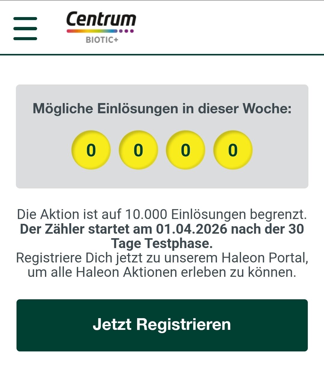 Aktionszeitraum der Centrum gratis testen Aktion:Â