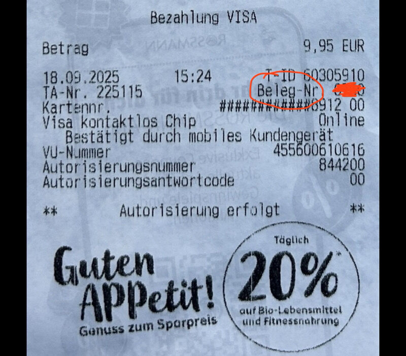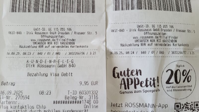 @MASH: Ganz lieben Dank für die Antwort. Mein Bon sieht anders aus. Hatte aber gestern auch schon bei den gespeicherten in der APP geschaut. Auch da nicht fündig geworden. Hier ist es ja jetzt egal aber ich hänge Dir mal den Bon an. Oben ist nur das Produkt weg.