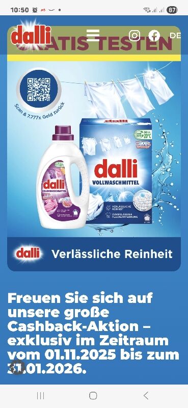 Kauft im Zeitraum vom 01.11.2025 bis 31.01.2026 eines der teilnehmenden dalli Waschmittelprodukte - Auf Aktionsseite registrieren