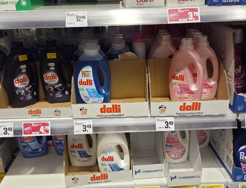 Ah, Dalli Waschmittel hat meine Oma früher immer benutzt! Für alle, die es interessiert: Nein, ist nicht neu und ist nicht aus dem Osten. Kommt aus Stolberg, NRW und gibt es seit über 100 Jahren. Die produzieren auch Waschmittel, Reinigungsmittel und Kosmetik für Discounter (z.B. Aldi, Lidl, Penny), aber eben auch die „klassische“ eigene Waschmittel-Reihe. Übrigens ein sehr großes Unternehmen, in manchen Segmenten sogar Marktführer.