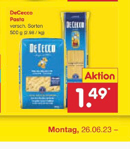 Die De Cecco Pasta gibt es ab Montag im Angebot für 1,49€ bei Globus.