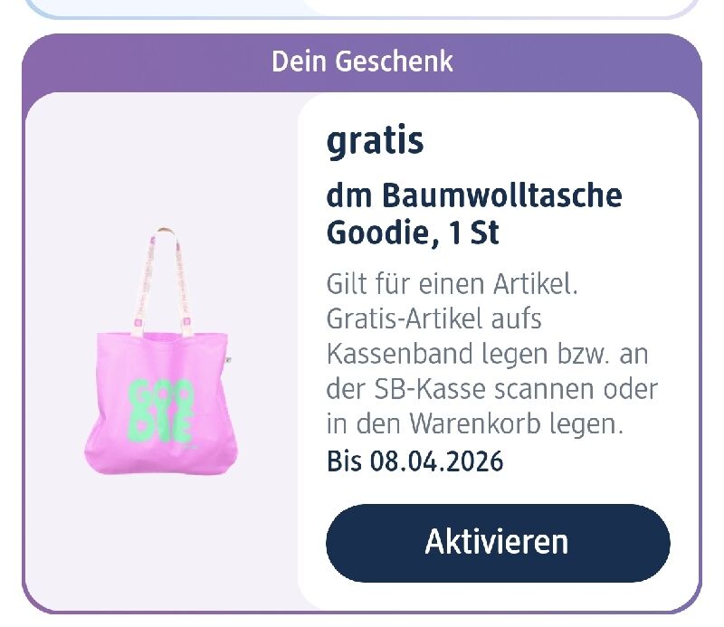 | Jede Woche ein neues Geschenk | Nur mit dm-Konto/App nutzbar |