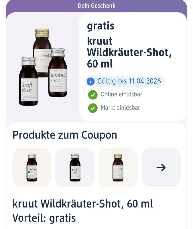 - Schritt 4: Den Coupon beim nächsten Einkauf aktivieren und das Geschenk (bei mind. 1⏠Umsatz) einfach mitnehmen.