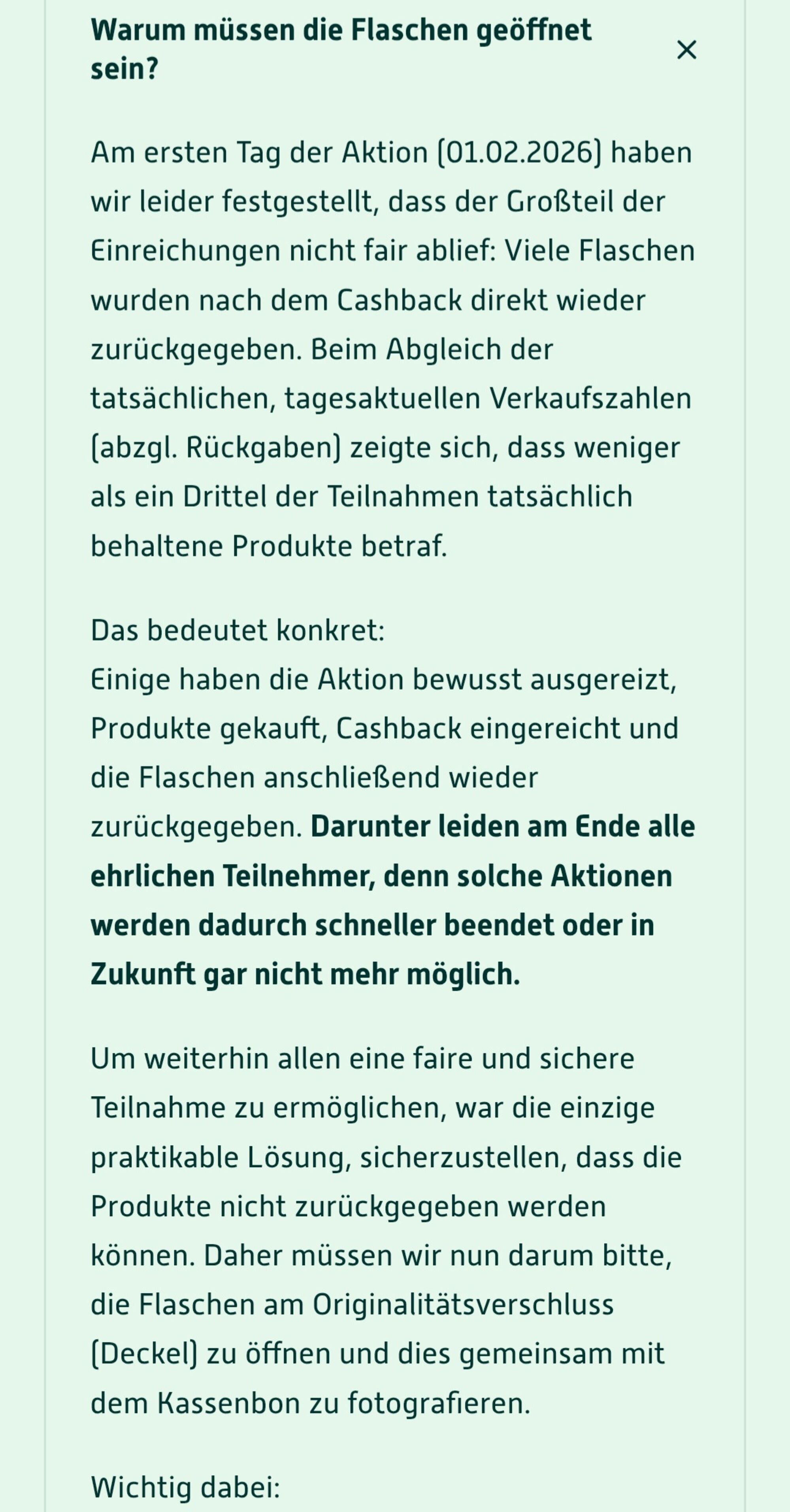 Zum hochladen des Kassenbons mit Flaschen steht drin , dass der Deckel geöffnet sein muss. Wie ist das denn gemeint?