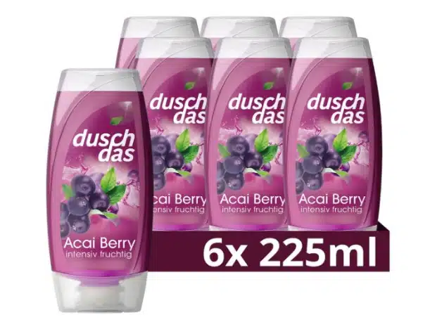 6x 225 ml Duschdas Duschgel Acai Berry Duschbad mit Fresh-Energy jetzt für nur 5,64€ inklusive Prime Versand erhältlich, anstatt des regulären Preises von 10€. Aktiviert das Sparabo, um auf den Preis zu kommen! 😊