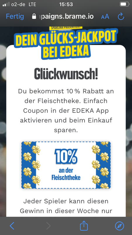 Und hier kommt wieder ein Glücksspiel von Edeka.