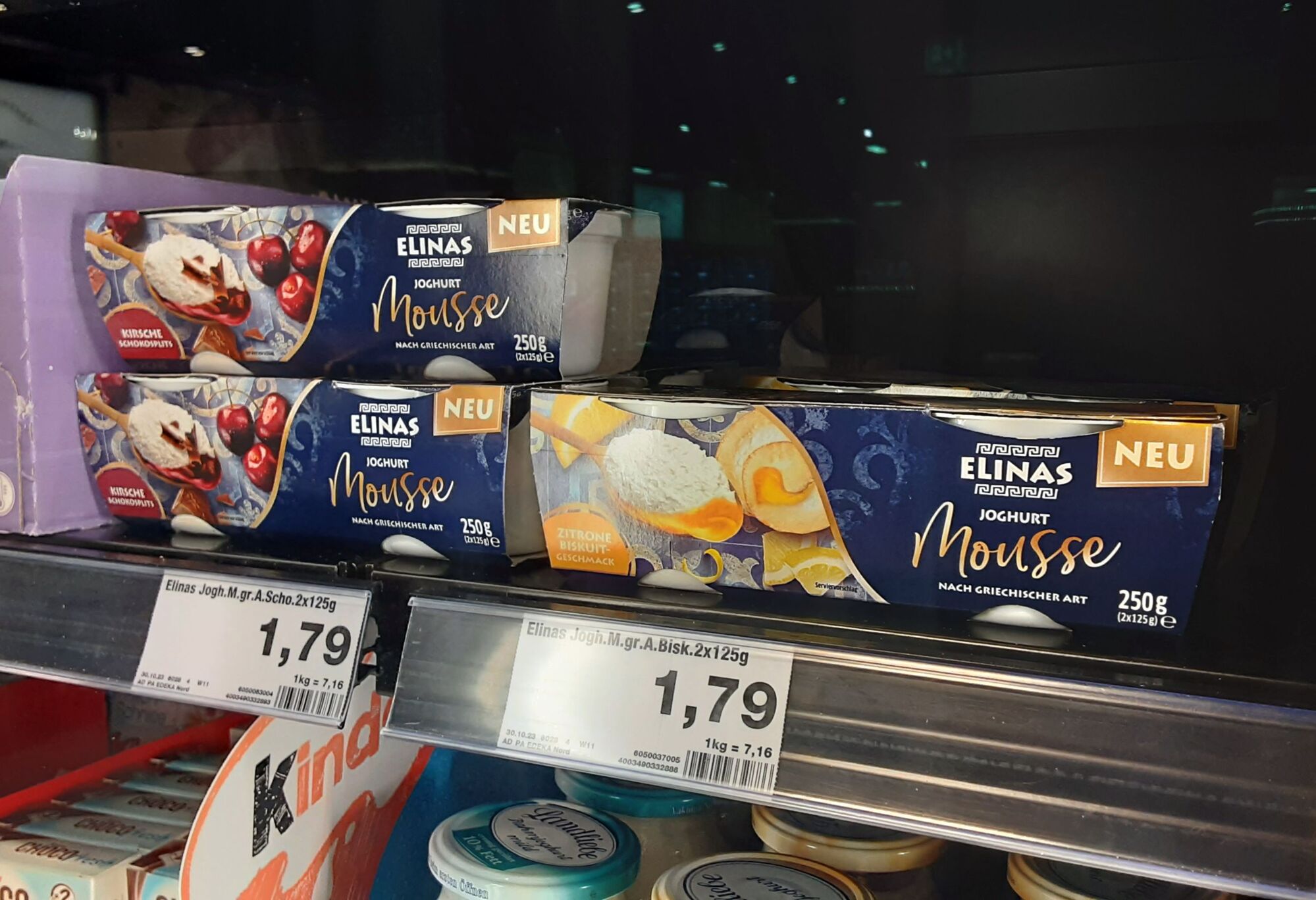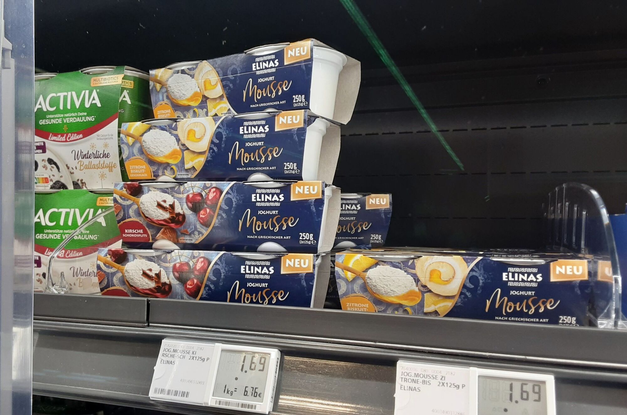 In Berlin habe ich es bei Rewe, Kirsch und bei Hit, Zitrone-Bisquit gefunden. Tipp: Sie stehen bei den Mousses, nicht bei den normalen Elinas Joghurts und haben eine schwarze Umverpackung im Gegensatz zu den blauen Joghurts. Viel Erfolg beim Finden.