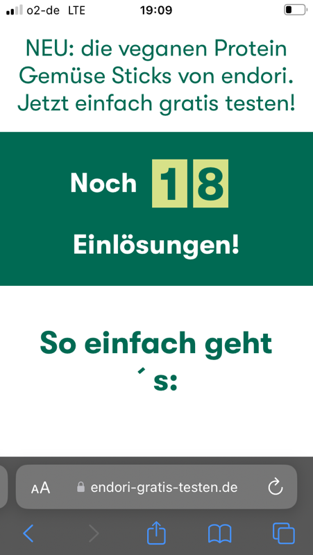 vielen Dank für Deine Teilnahme an der „endori Protein Gemüse Sticks gratis testen“ Aktion.