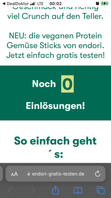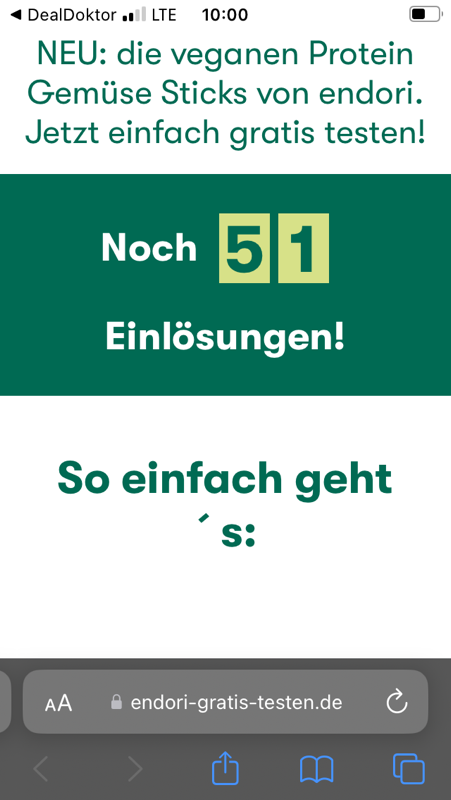 Mit dieser Aktion könnt ihr euch ein pflanzliches Produkt ganz ohne Risiko sichern. endori lädt euch ein, die veganen Protein Gemüse Sticks auszuprobieren und den Kaufpreis vollständig zurückzuerhalten. Perfekt für alle, die neugierig auf vegane Alternativen sind und dabei sparen möchten. Der Einkauf erfolgt ganz normal im Handel, die Erstattung bequem per Überweisung. Wichtig ist nur, dass ihr euch an die Teilnahmebedingungen haltet. Schnell sein lohnt sich, denn die Aktion ist limitiert.