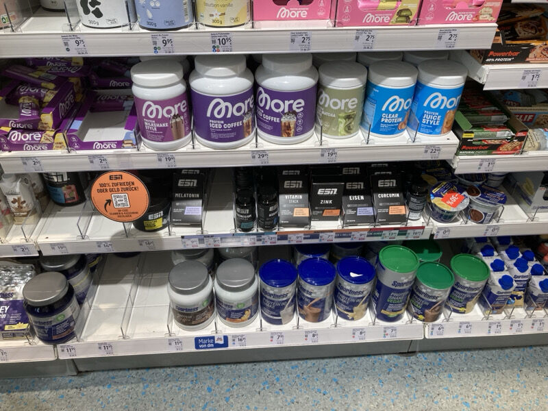 Bin doch bei DM fündig geworden – die Produkte stehen nicht im Arzneiregal sondern bei Bodybuildersachen wo Proteinozlver und Riegel stehen.
