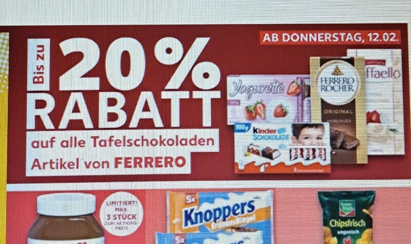 Die Ferrero-Schokolade gibt es jetzt bei Kaufland mit bis zu 20% Rabatt. Schaut ruhig mal nach. Und wer kein Kaufland hat, der kann immer noch am Glücksrad bei Edeka drehen. Evt. bekommt ihr dann 15 % auf Schokoladen. Aber bitte nicht vergessen, die Coupons auch zu aktivieren.