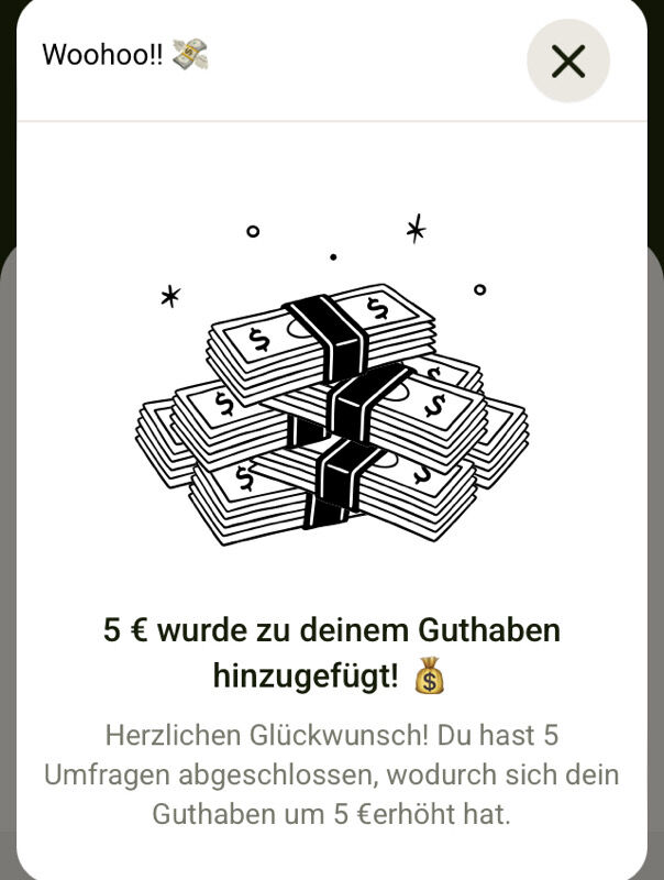 - Ihr erhaltet 5€ für 5 Umfragen