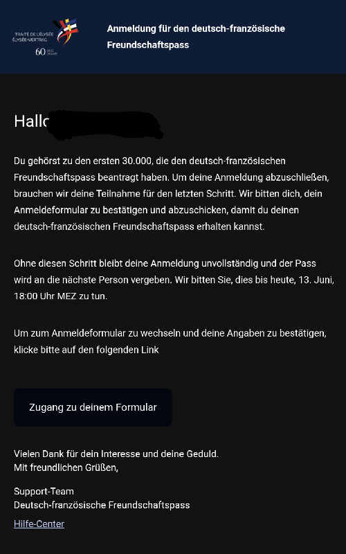 ich habe eine Email bekommen, dass ich unter den ersten 30.000 war und konnte mich heute morgen anmelden