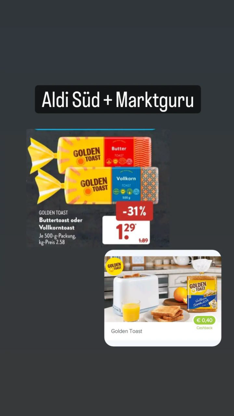 ・ 0,40€ Cashback beim Kauf von Golden Toast deiner Wahl.