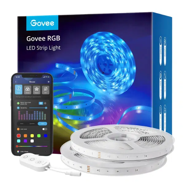 Die 10m setzen sich aus zwei Streifen mit einer Länge von je 5m zusammen. Wie es bei Govee-Produkten üblich ist, kann man das Licht in der zugehörigen App aussuchen und steuern und Sprachbefehle per Alexa oder Google Assistant geben. Und da die App-Steuerung via WiFi möglich ist, lässt sich das Licht überall an- und ausschalten!