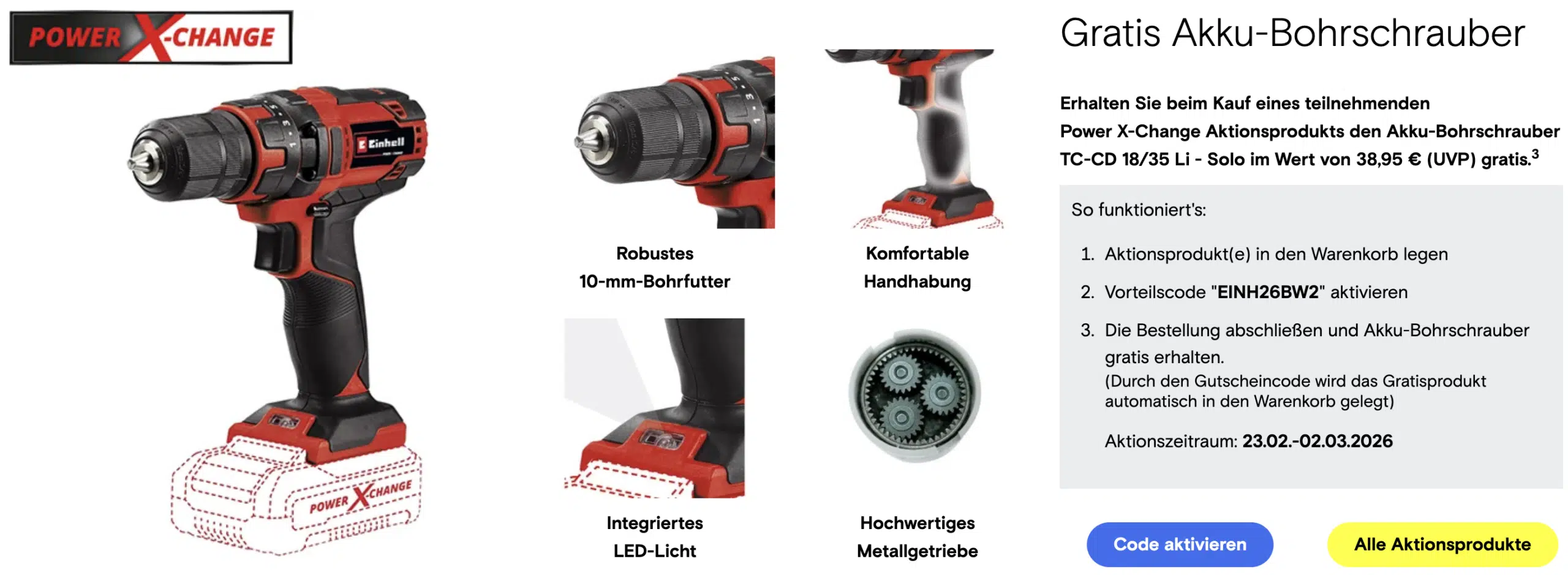 ABGELAUFEN Letzte Chance! đ ď¸ Einhell-Aktion bei Conrad: Gratis Akku-Bohrschrauber abstauben!