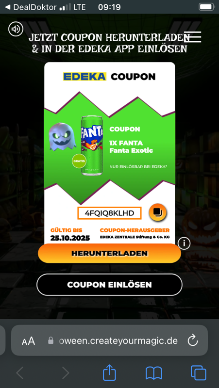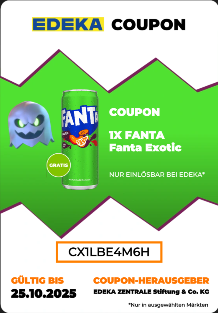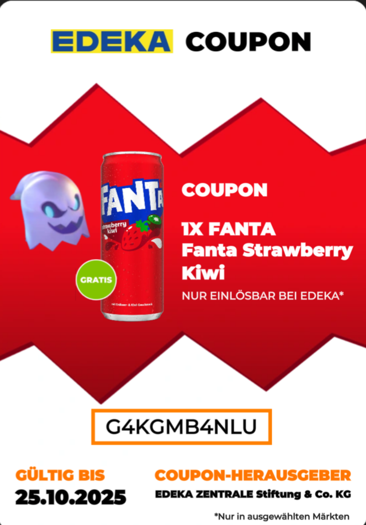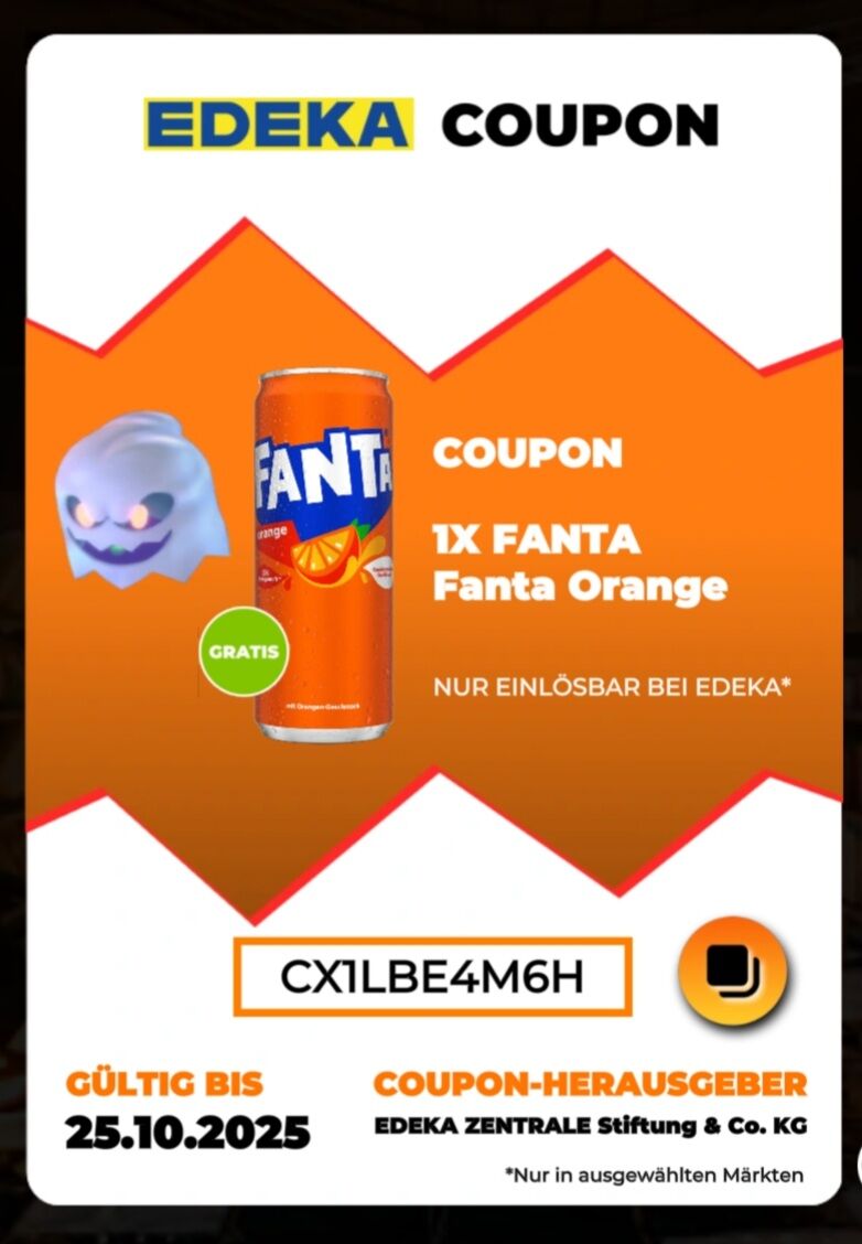 Ihr wollt bei der Edeka Geisterjagd mitmachen und euch eine Fanta gratis sichern? Dann aber Beeilung! Die Aktion ist am 13.10.2025 gestartet und dauert nur bis 18.10.2025 – und nur, solange der Vorrat reicht! Die Codes sind jeweils bis zum 25.10.2025 gĂŒltig.Â