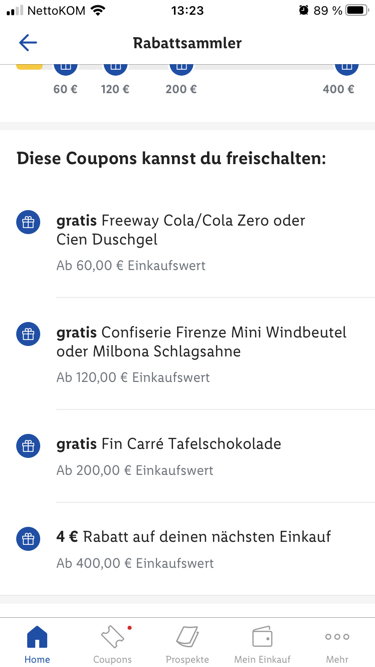 @Bine345 Wie bitte? 😯 Nein, ich habe die noch nicht in der App, das sind alles Coupons in dieser Sammelrabatt Übersicht, ich habe noch nichtmal 60€ erreicht, bei 60€ gibt es ja den ersten Sammelrabatt Coupon…