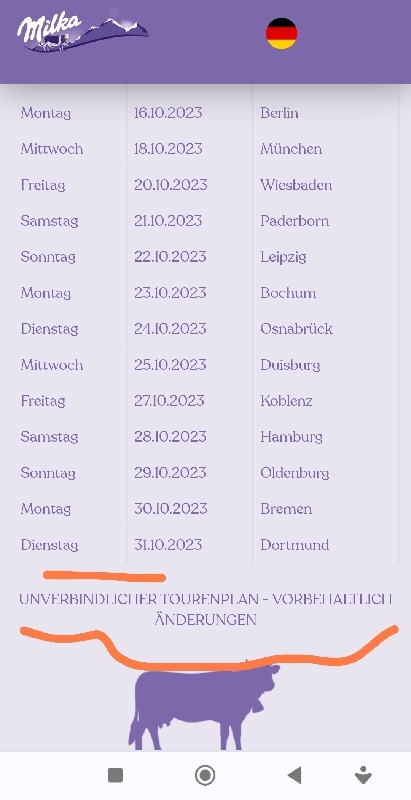 Danke für die Info, dann ist klar, dass ich am 08.10. nix von Milka am Alex gesehen habe bzw. sehen konnte 🙂