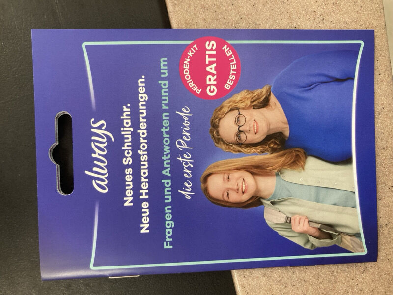 kann man ein gratis Perioden-Kit von Always für die Tochter bestellen.