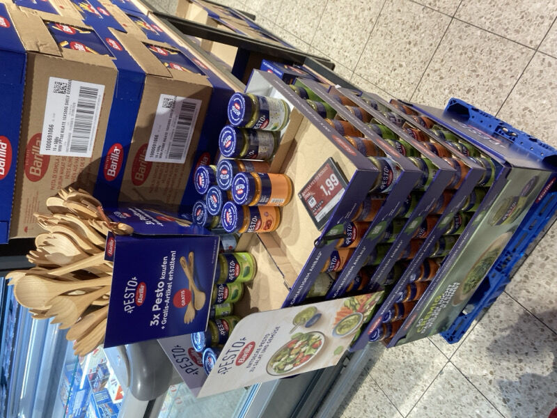 Wenn man dort 3x Barilla Pesto kauft (derzeit zum Preis von 1,99€), gibt es gratis dazu Salatbesteck von Barilla aus Holz.
