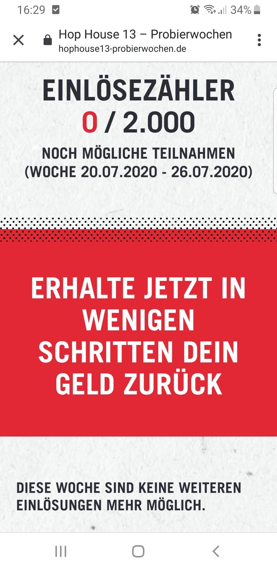Die Seite geht schon, aber man kann nicht abschicken, kurz davor kommt, 0 Einlösungen möglich 😉