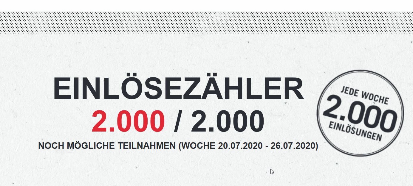 Pro Woche max. 2.000 Einlösungen möglich.