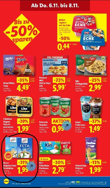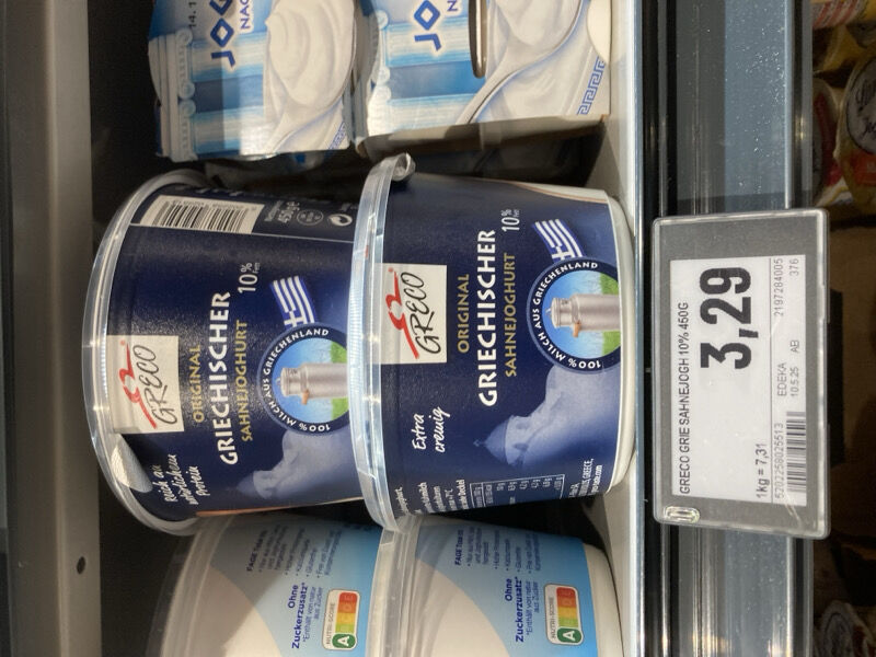 In einem anderen Edeka gab es kleine Joghurtbecher (10%, 2%, Schafsjoghurt) für 1,29€ bzw. 1,49€. Mein Rewe hat Feta von Greco.