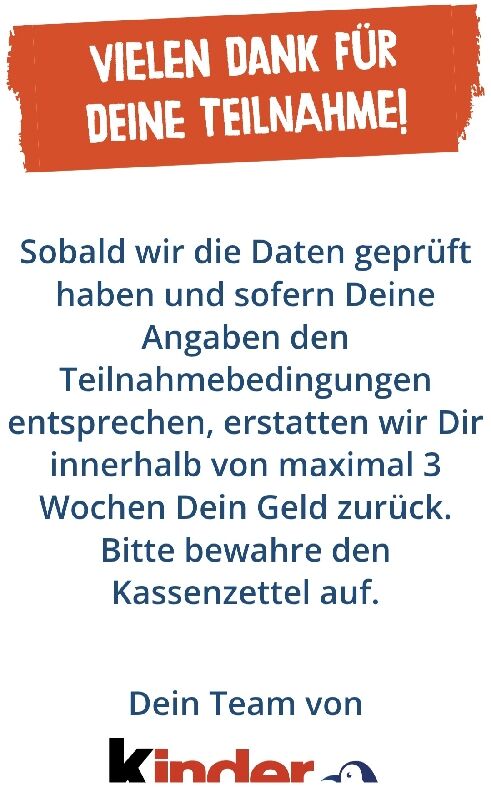 Es nimmt ausschließlich die 8er Packung kinder Pingui „Jetzt eine Packung Gratis!“ teil. Die Aktionspackung ist an der besonderen Kennzeichnung auf der Vorderseite sowie auf der Rückseite der Packung erkennbar.