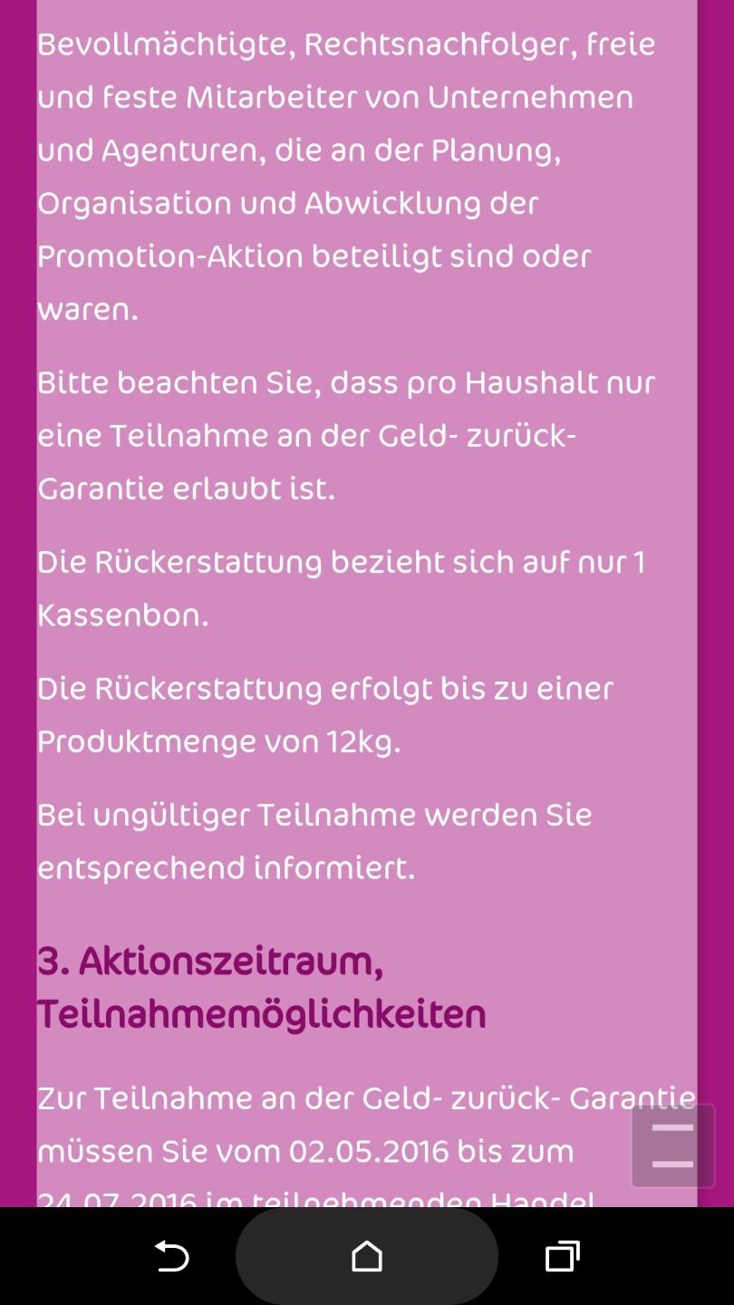Mit dem sofortigen Spenden an Tierheime würde ich vorsichtig sein. Den unter Punkt 3 in den Teilnahmebedingungen steht: „Bitte heben Sie die Originalpackung Ihres Produktes auf, damit wir ggf. Ihre Berechtigung überprüfen können.“ Also lieber warten, bis das Geld zurück ist und dann spenden.