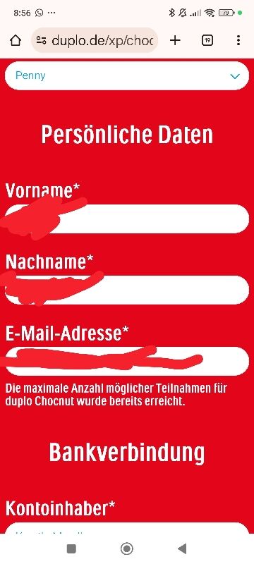 Dauer der Hanuta Riegel / duplo Chocnut gratis testen Aktion: