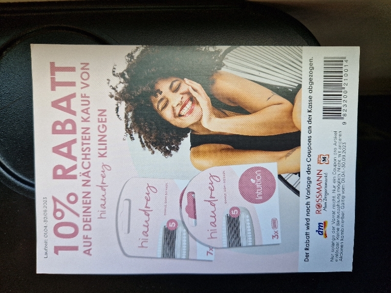 • Aktuell liegt bei DM noch ein Flyer aus, der 10% auf die Klingen gibt,- sodass nochmal 99 ct abgezogen werden 😁 ( habe ihn auch nochmal in den Kommentaren )