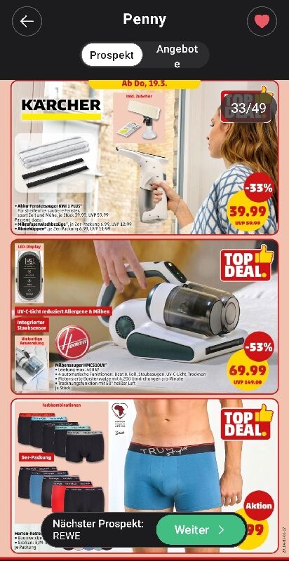 Der Hoover Milbensauger ist ab Morgen (19.03.) in den Penny Filialen für 69,99€ im Angebot (eventuell nicht bundesweit). Deal ist bereits überarbeitet 😉
