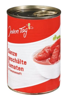 „J e d e n T a g geschälte Tomaten für 400g für 0,69€ (statt 0,85€)“