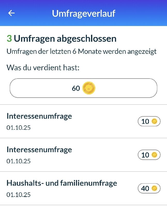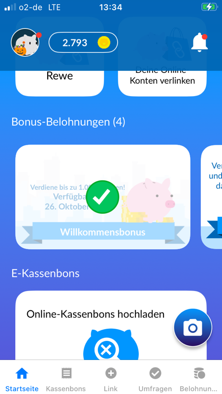 Man muss möglichst viele unterschiedliche Geschäfte einreichen, wenn Coin treshold angezeigt wird, dann geht es mit den Coins weiter. Auch Parkquittung oder Bibliotheksgebührquittung gehen.