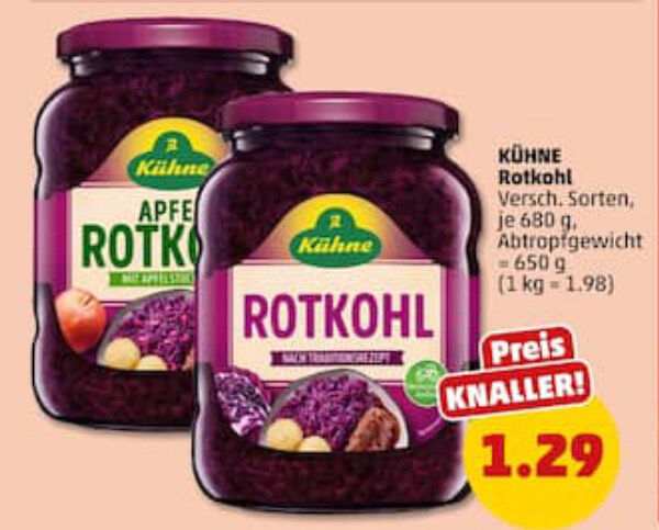 2x Gurken und 1x Rotkohl – passt super! Dann ist man bei 99 cent pro Glas! oder 89 ct. bei 2 Rotkohl und einmal Gurken.