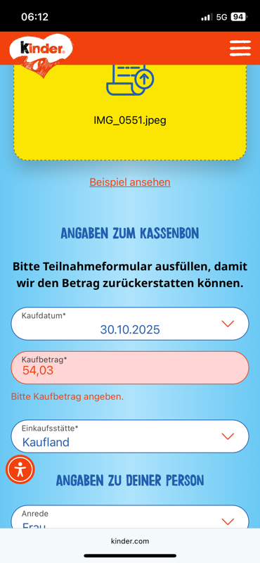 https://www.kinder.com/de/de/xp/paradiso-gratistesten - Teilnahmeformular ausfĂŒllen