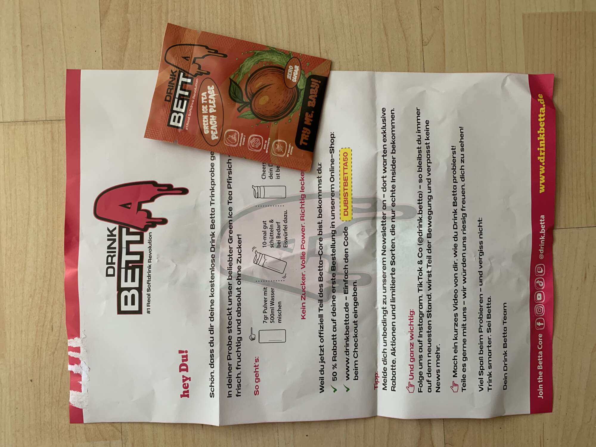 Betta-Familie, wir schulden euch ein Update!Erstmal: Danke fĂŒr eure unglaubliche Geduld. đWir wissen, viele von euch warten sehnsĂŒchtig auf ihre Drink Betta Trinkprobe â und wir versprechen euch: Sie kommt! Doch ganz ehrlich?Bei einem Projekt in dieser GröĂenordnung bleiben kleine Verzögerungen leider nicht aus.Ăber 100.000 Bestellungen bedeuten auch: 100.000 Etiketten, PĂ€ckchen, Systeme â und ab und zu auch ein paar Bugs. đđ» Aber: Wir arbeiten mit Hochdruck daran!Aktuell fixen wir die letzten Kinderkrankheiten im System und produzieren parallel schon fleiĂig fĂŒr den groĂen Launch. đ Wann kommt meine Probe?âĄïž Kurz vor dem offiziellen Online-Shop-Launch Ende August / Anfang September gehen alle Trinkproben gesammelt raus.Versprochen. Danke fĂŒr euer Vertrauen â und eure Geduld.Wir sind selbst gespannt wie Bolle auf euer Feedback. đŹ