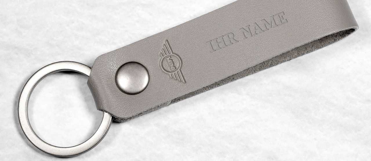MINI haut kostenlos Schlüsselanhänger mit individueller Gravur raus.