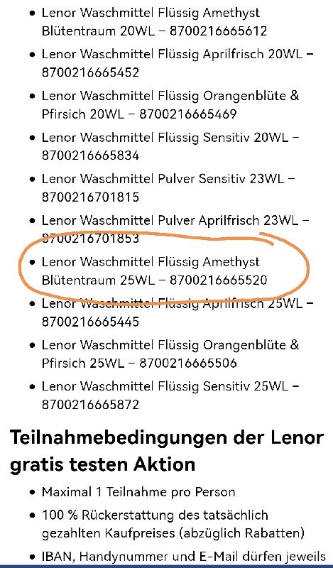 Teilnahmebedingungen der Lenor gratis testen Aktion