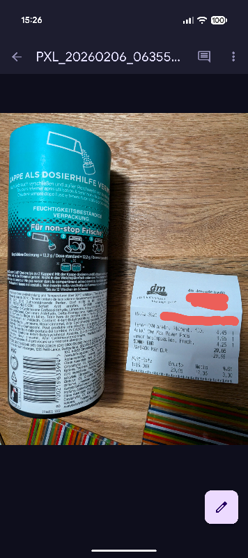 - Fotografiert den Kassenbon zusammen mit der Rückseite des Produkts (EAN sichtbar).