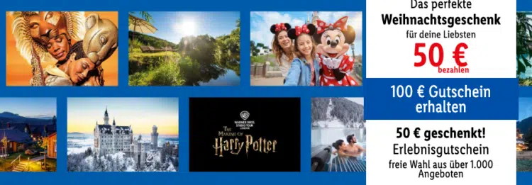 Holt euch nun den Erlebnis-Gutschein für den halben Preis von Lidl im Wert von 100€ zum Sparpreis von nur 50€!
