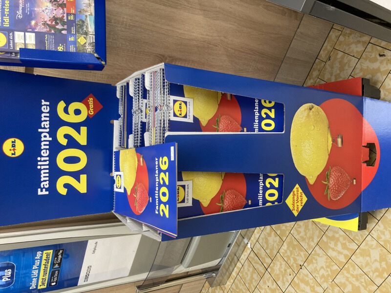 Ihr findet den Lidl Familienplaner 2026 in der Regel in einem Aufsteller im Ausgangs- oder Kassenbereich von Lidl. Erfahrungsgemäà sind die Auflagen schnell vergriffen â also besser nicht zu lange warten, wenn ihr einen ergattern wollt. Falls der Familienplaner in eurer Filiale schon vergriffen sein sollte, lohnt sich womĂśglich der Besuch in einer anderen. đđď¸