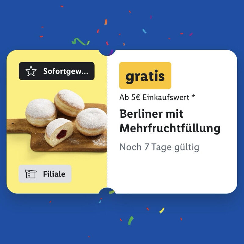 Gestern: Ein Berliner gratis ab 5 € MEW. Das schaffe ich.