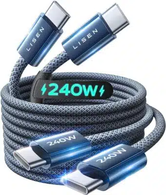 Ein Power-Kabel, das keine Wünsche offen lässt: Das USB-C-Kabel von Lisen bringt satte 240 Watt Leistung mit und lädt damit problemlos jedes USB-C-Gerät.